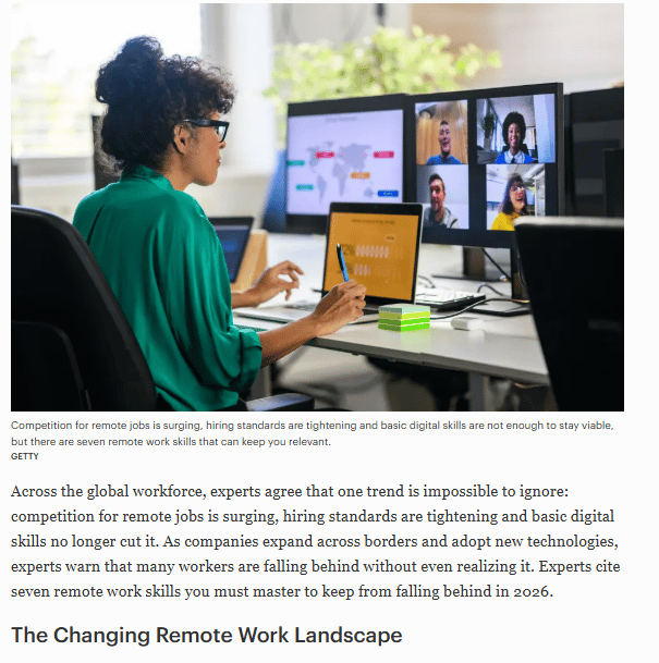 This month we’re spotlighting a recent Forbes article that dives into “7 Remote Work Skills You Need To Keep From Falling Behind In 2026”